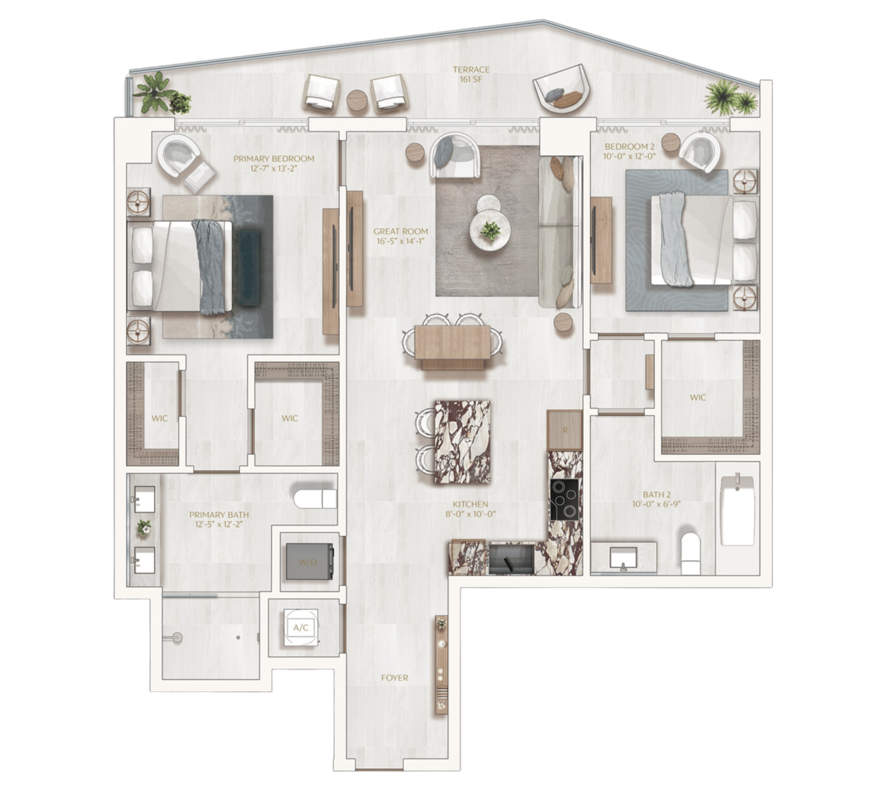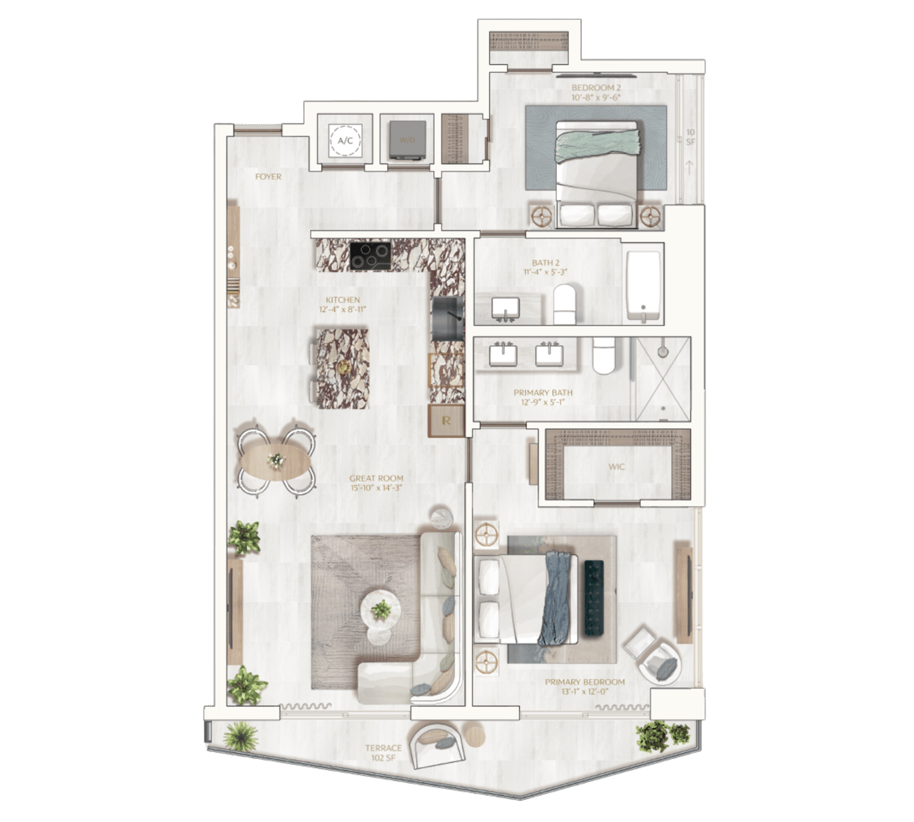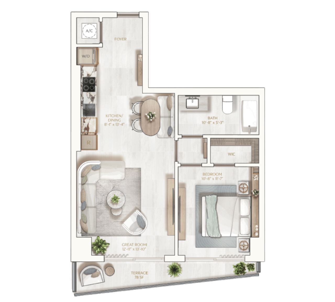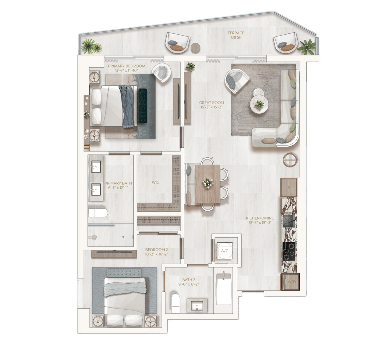 With 13-foot ceilings and wide, open layouts, the City Flats embody Viceroy’s signature sense of volume and design. Each residence feels airy and architectural—spaces that elevate daily living through light, scale, and effortless style.