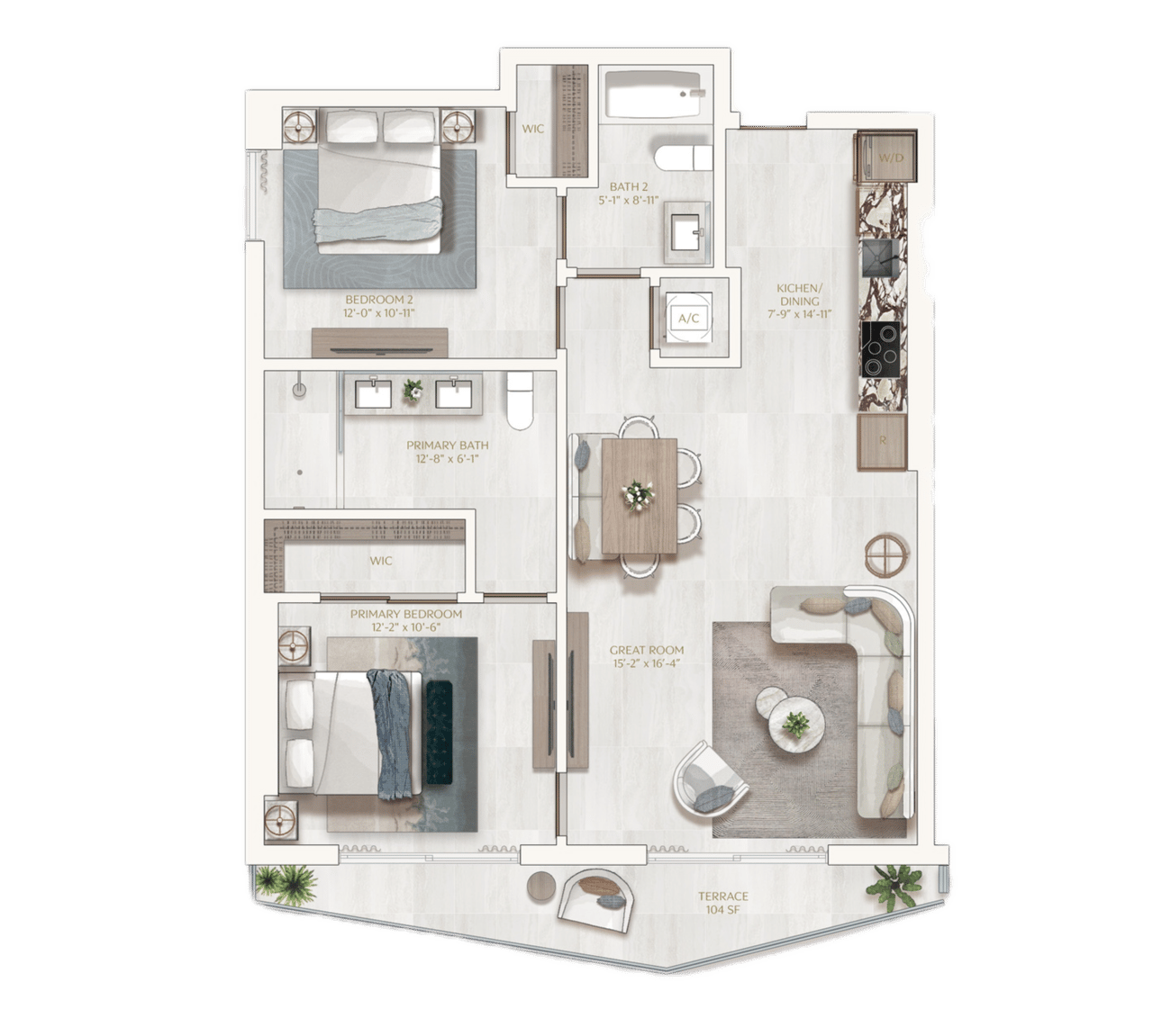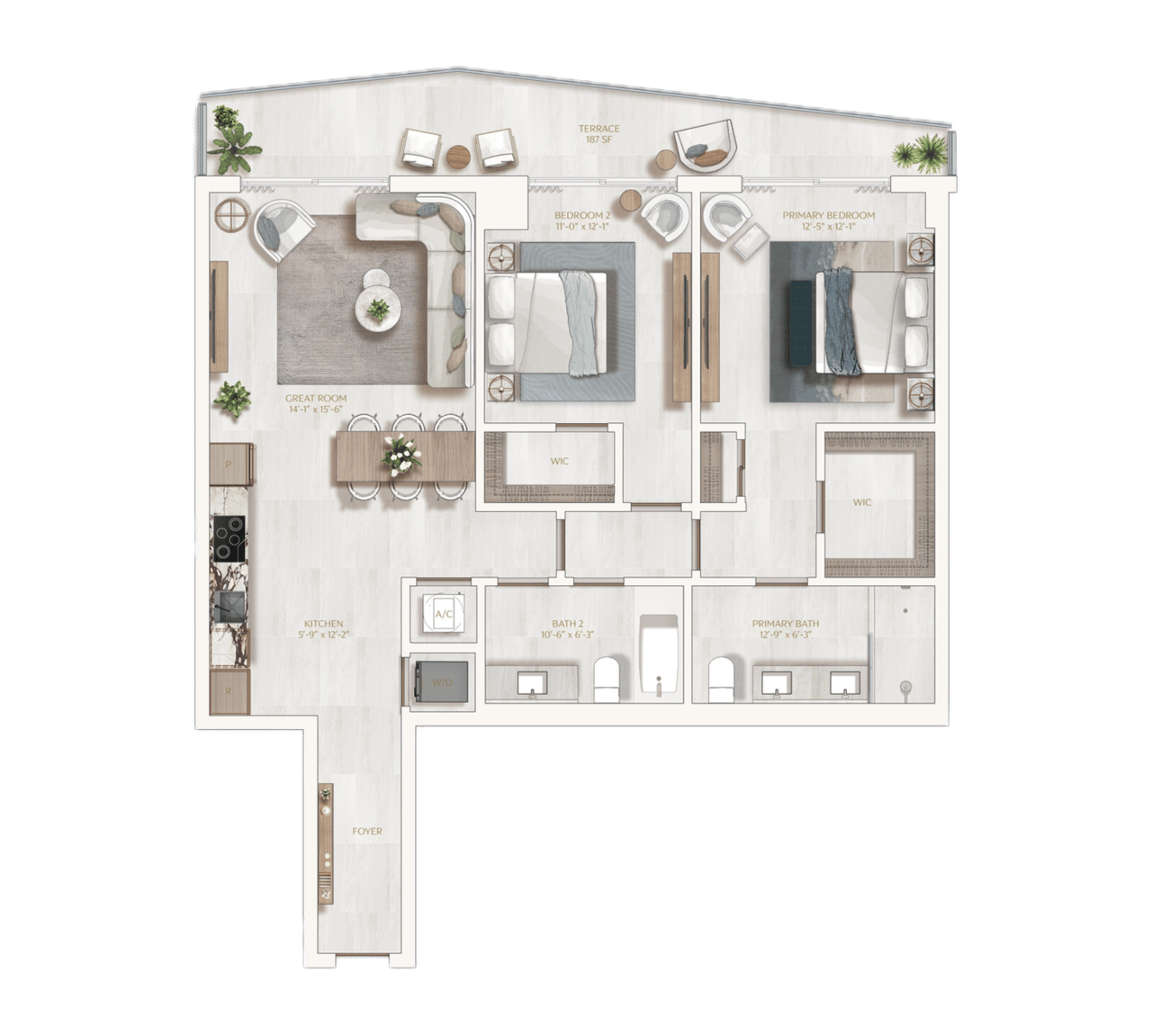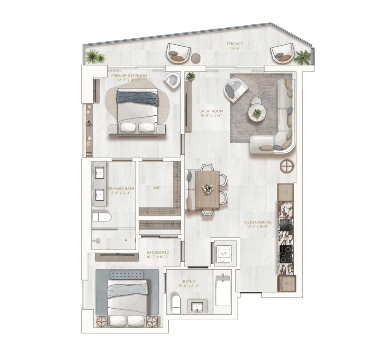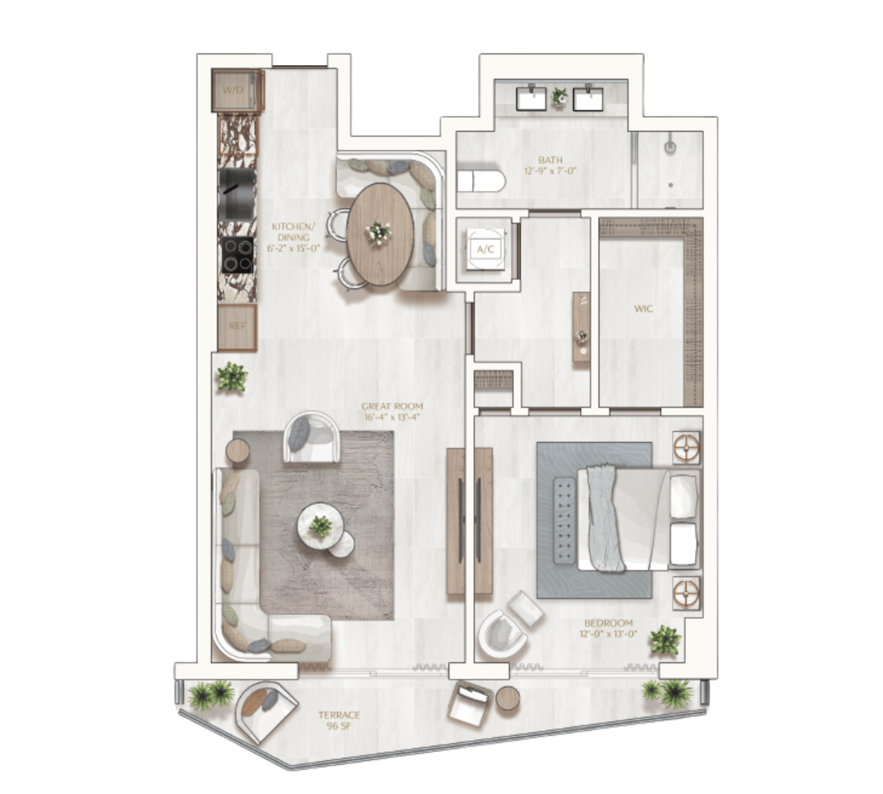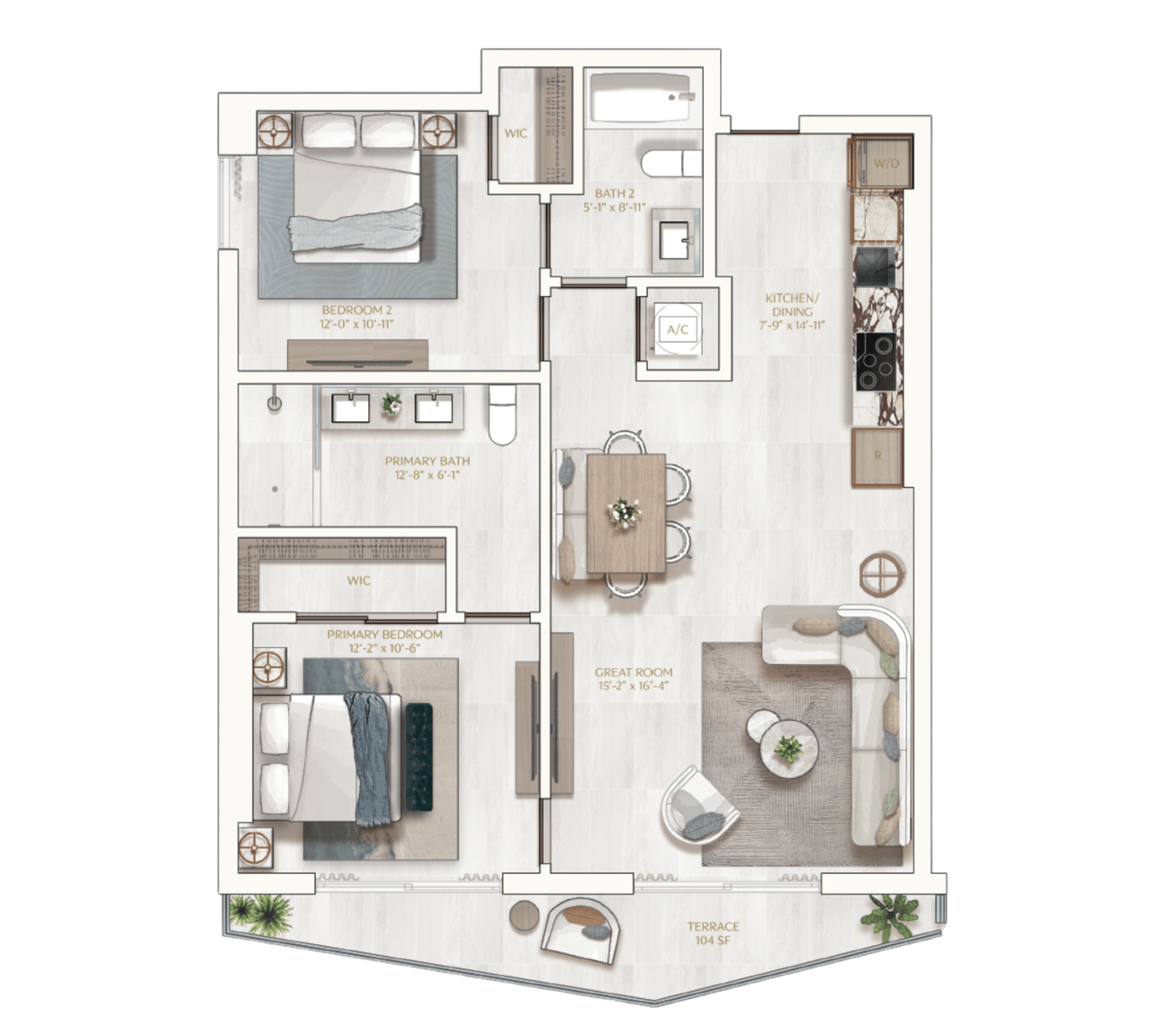 With 13-foot ceilings and wide, open layouts, the City Flats embody Viceroy’s signature sense of volume and design. Each residence feels airy and architectural—spaces that elevate daily living through light, scale, and effortless style.