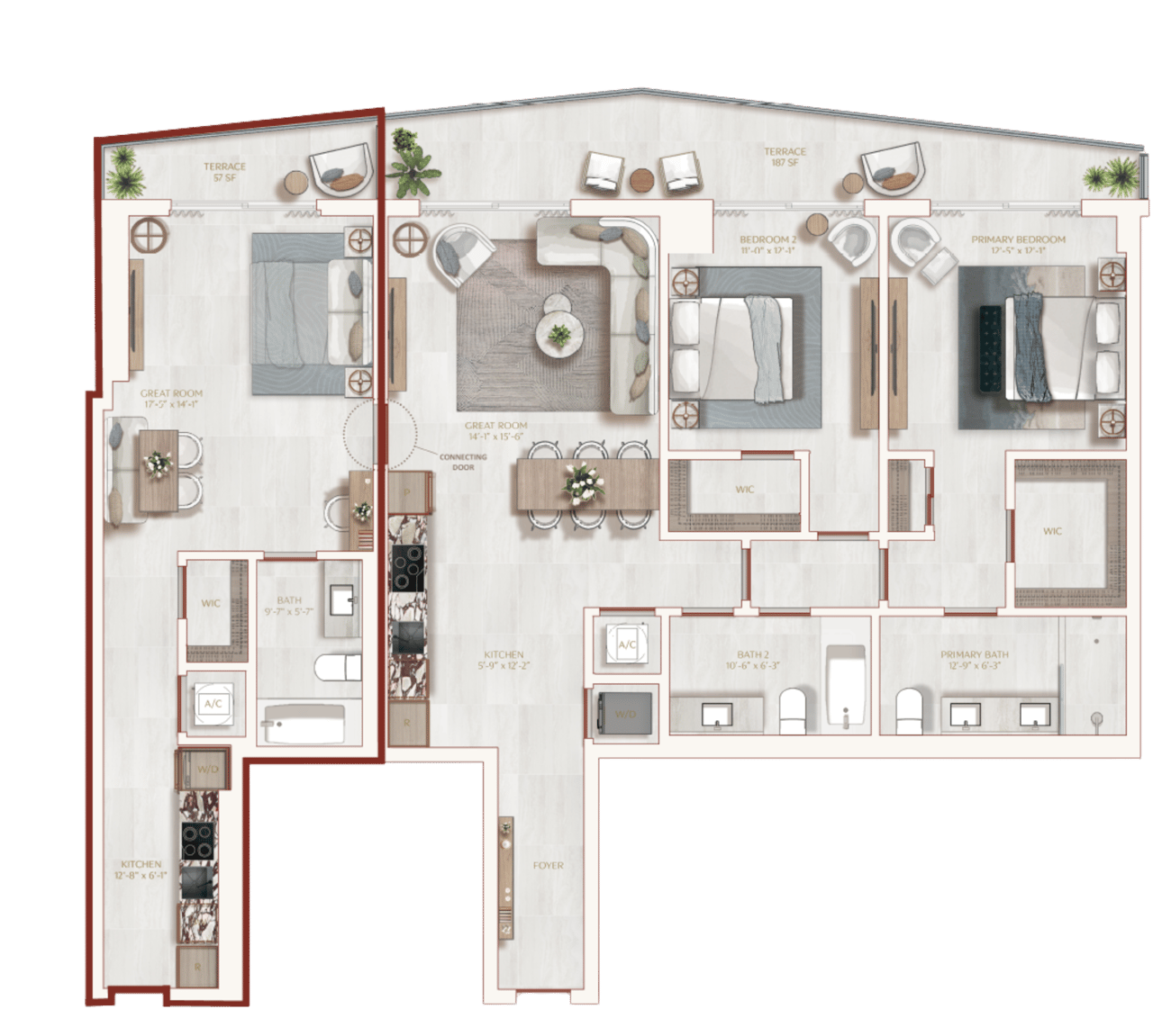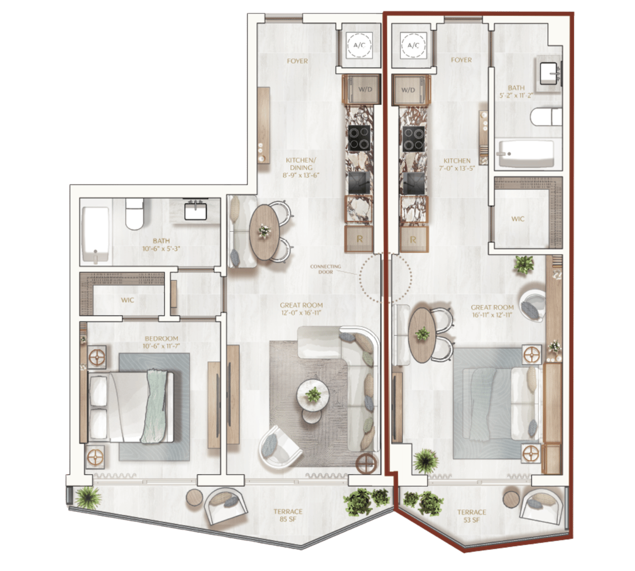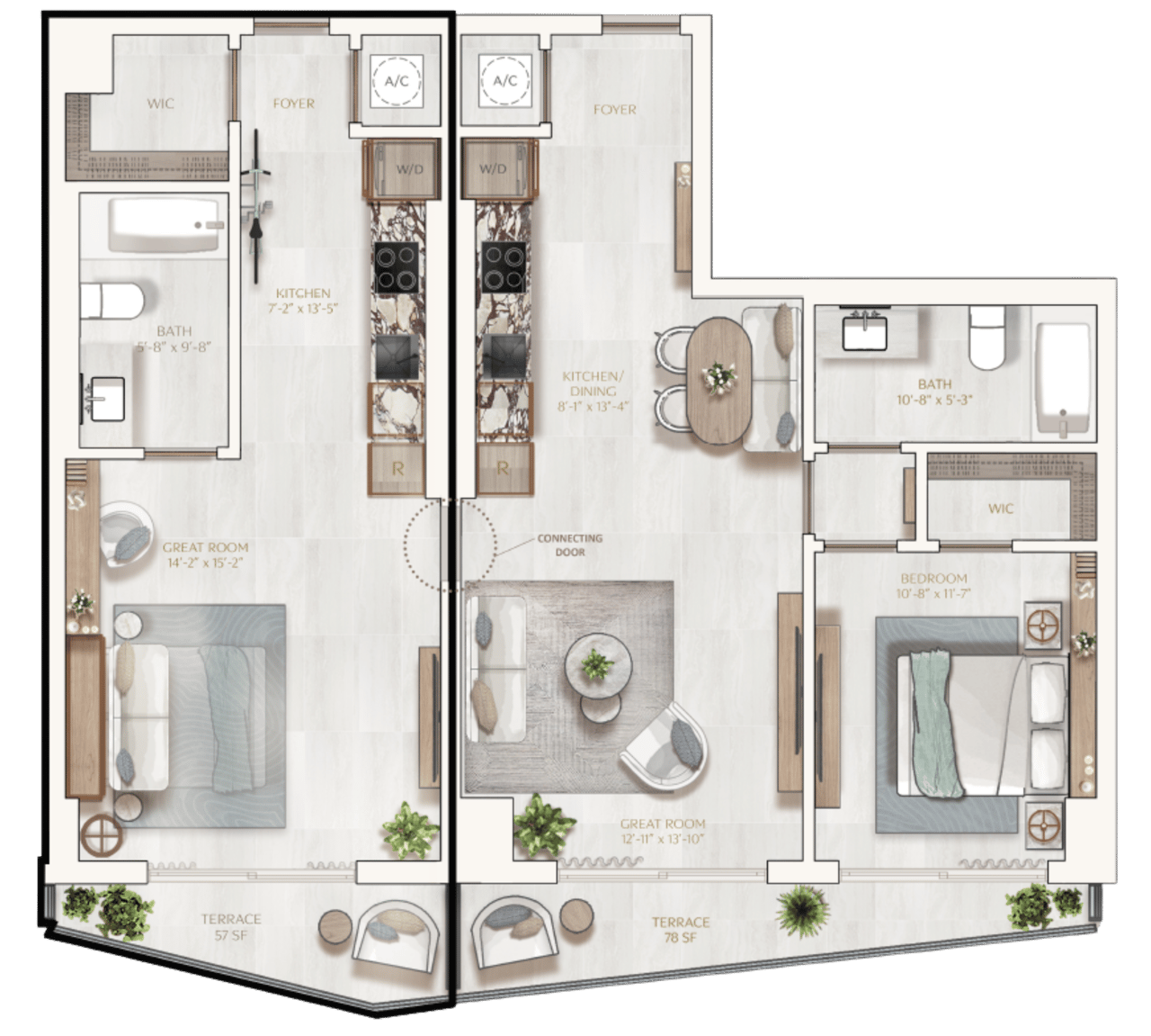 A signature offering of Viceroy Brickell, the Adjoining Residences Collection presents adjoining homes designed for flexibility. Enjoy both as one expansive residence or live in one and lease the other—each with its own entrance for complete independence. Flexibility and privacy are at the owner’s discretion—life in motion, perfectly attuned to Brickell.