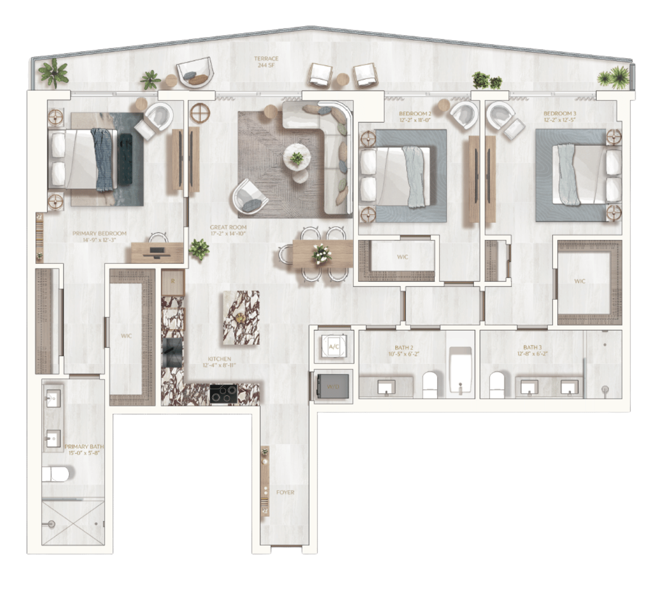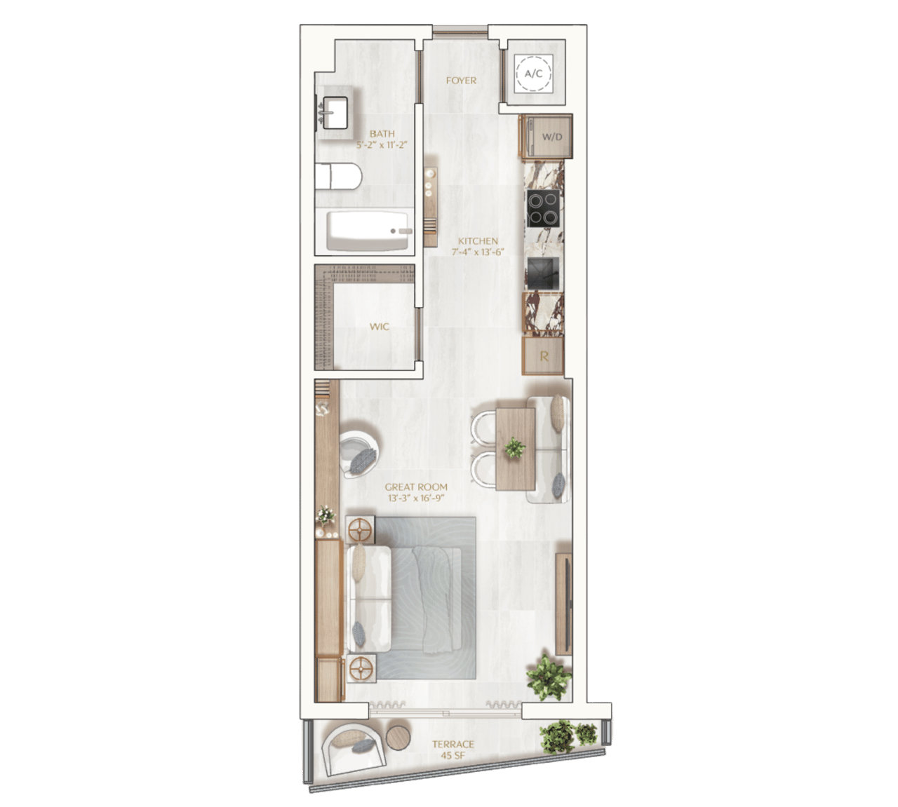 From efficient studios to elegant three-bedroom layouts, these homes are designed for a life that balances ease and refinement. Private terraces extend the living experience outdoors, while interiors blend contemporary design and timeless comfort.